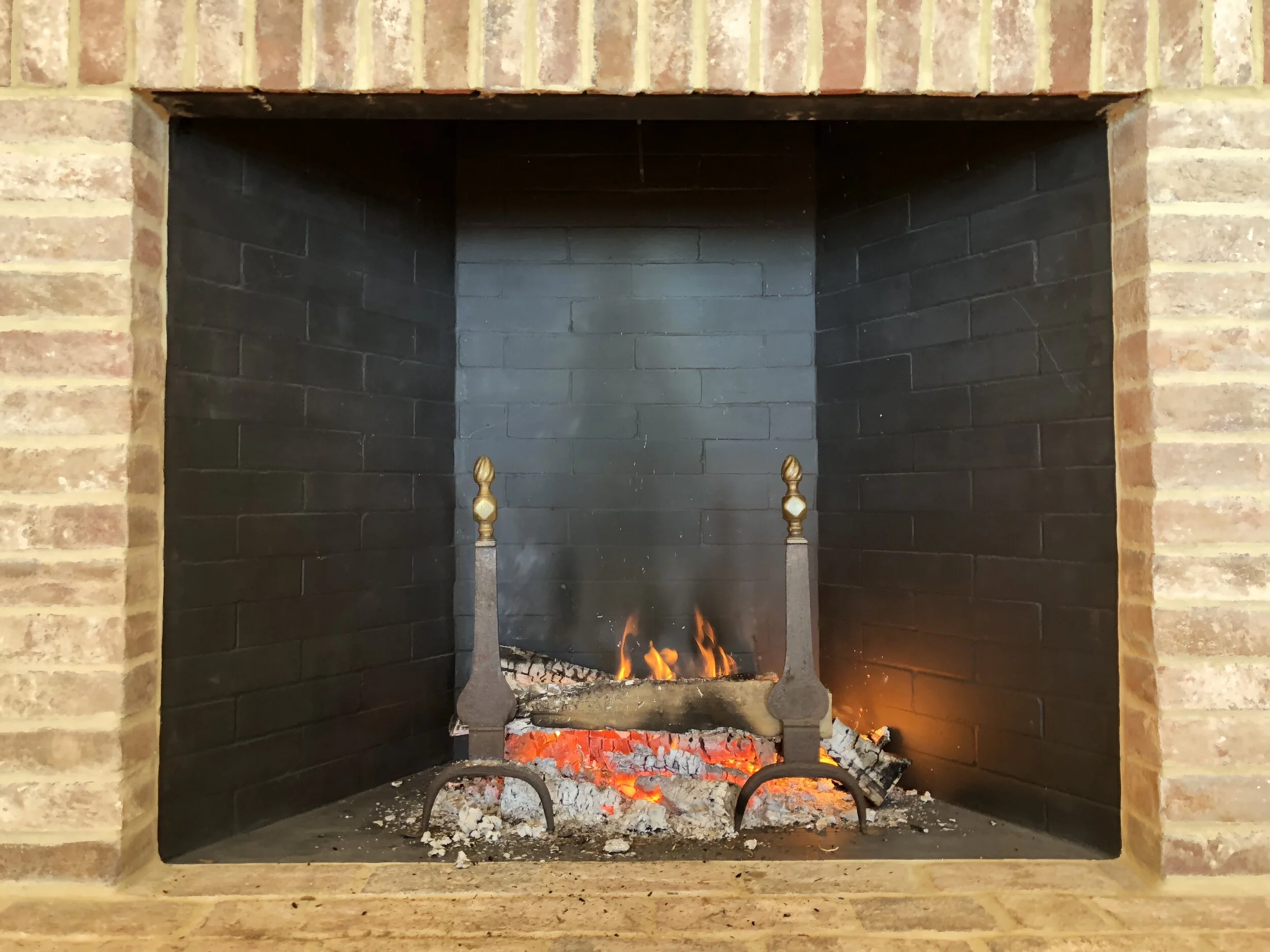 Blackened Firebrick for Firebox with Antique Andirons